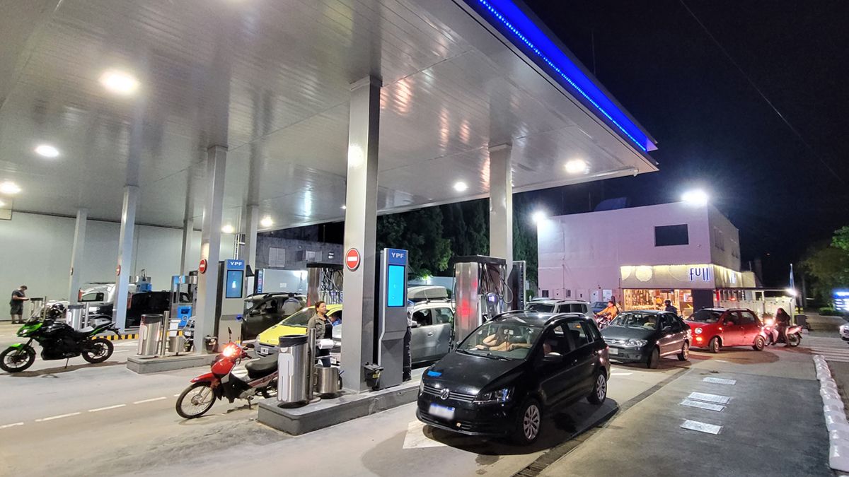 Largas filas de vehículos se formaron anoche en la ciudad en la víspera de un nuevo aumento en el precio de los combustibles.