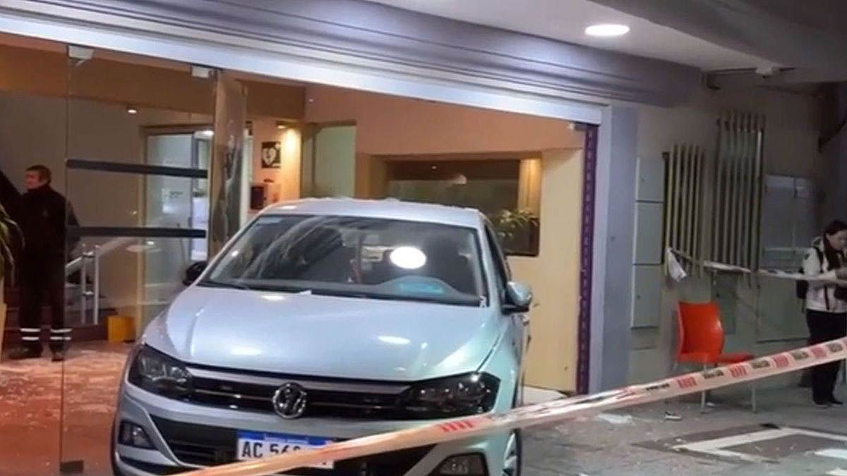 En ese momento, un Volkswagen Vento conducido por un hombre con problemas motrices, que estaba estacionado a 45 grados, arremetió marcha atrás contra el hall del teatro atropellando a varias personas.