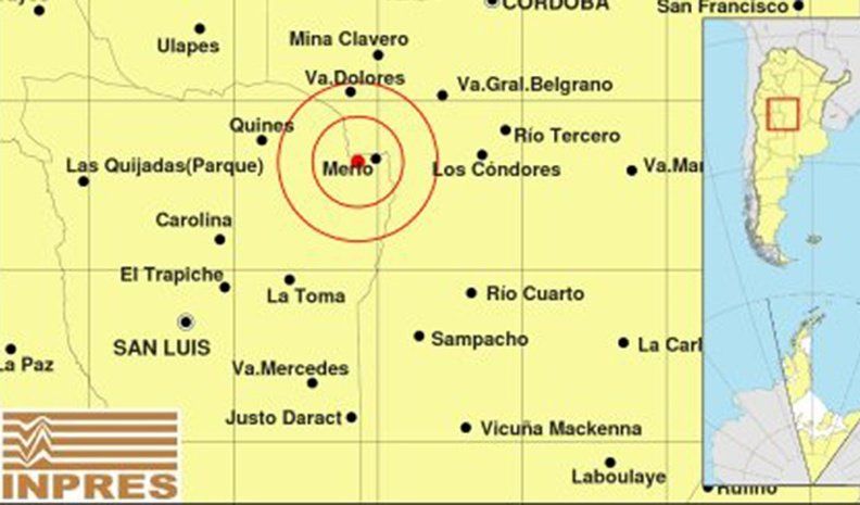 Un sismo de 4.5º Richter de magnitud se registró este mediodía a unos 13 kilómetros al oeste de Merlo, San Luis, y varios vecinos de Río Cuarto y zona advirtieron que sintieron el fenómeno.