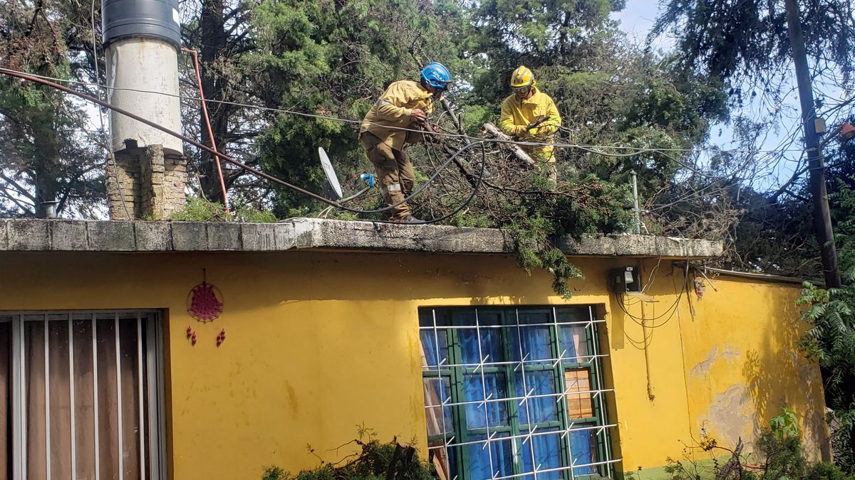 En Villa La Merced, una mujer estaba cocinando cuando llegó la tormenta y se cayó un pino que perforó el techo. Su pequeño hijo se salvó por centímetros y salió arrastrado del lugar.