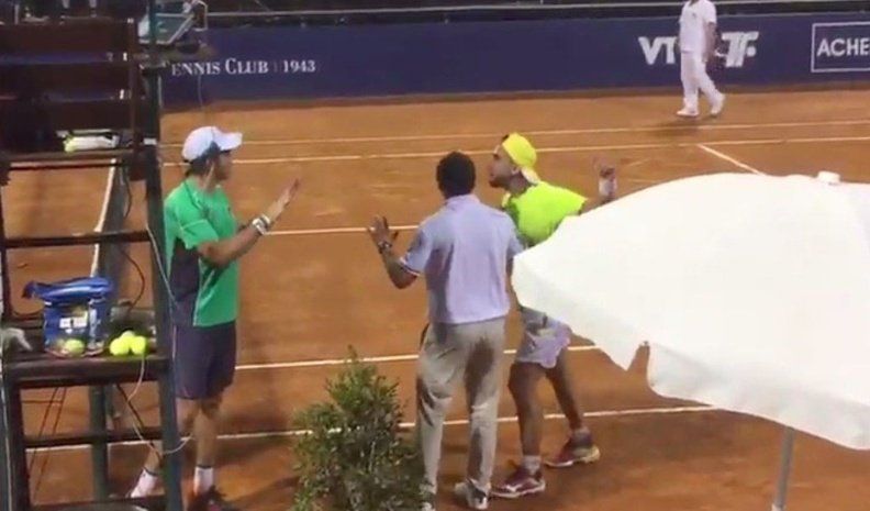 "Te espero afuera, a ver si sos tan gallito", lo desafió, mientras Berlocq le contestó: "Nunca me pelée en mi vida, me vas a matar".