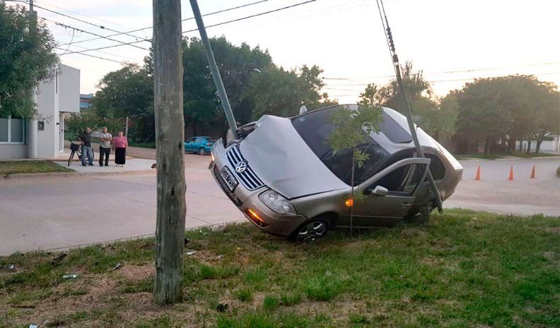 Un espectacular accidente se registró en la madrugada de ayer en la ciudad de Vicuña Mackenna cuando un VW Bora terminó enredado en los tensores de un poste de luz en Cipriano Morelli y Monseñor Muguerza. El automóvil era conducido por un joven de 25 años, quien fue trasladado al Hospital Municipal Enrique Carrozzi para una mejor atención. Ocurrió a las 6 de ayer.
