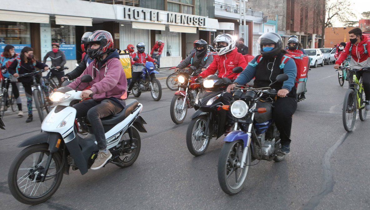 La colorida columna de los cadetes en motos y bicicletas se llevó adelante debido a la preocupación que tienen los trabajadores, ya que se sienten “expuestos ante la ola de inseguridad que se está viviendo en la actualidad”.
