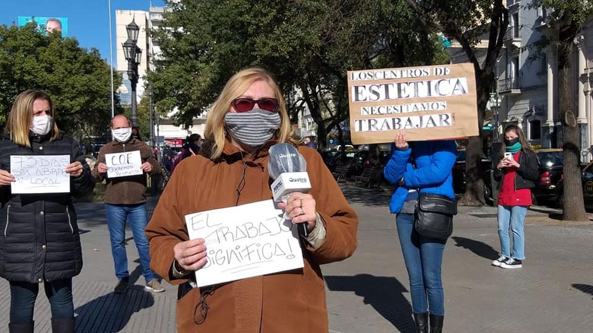 Siguen los reclamos de diversos sectores para retornar el trabajo con protocolos en el marco de la flexibilización de la cuarentena en la ciudad. En la mañana de este lunes, centros de estética y afines se concentraron en plaza Roca.