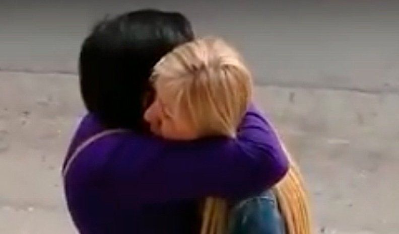 Las imágenes muestran que una mujer de cabello oscuro y de baja estatura pasa frente a Fernanda sin detenerse y sin reconocerla. Fernanda, la llama por su nombre y las dos extrañas se dan un abrazo prolongado.
