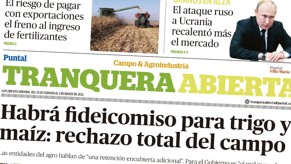 El suplemento Tranquera Abierta titula "Habrá fideicomiso para trigo y maíz: rechaso total del campo", las entidades agropecuarias dicen que se trata de una 'retención encubierta adicional' y para el Gobierno es el 'mal menor'.