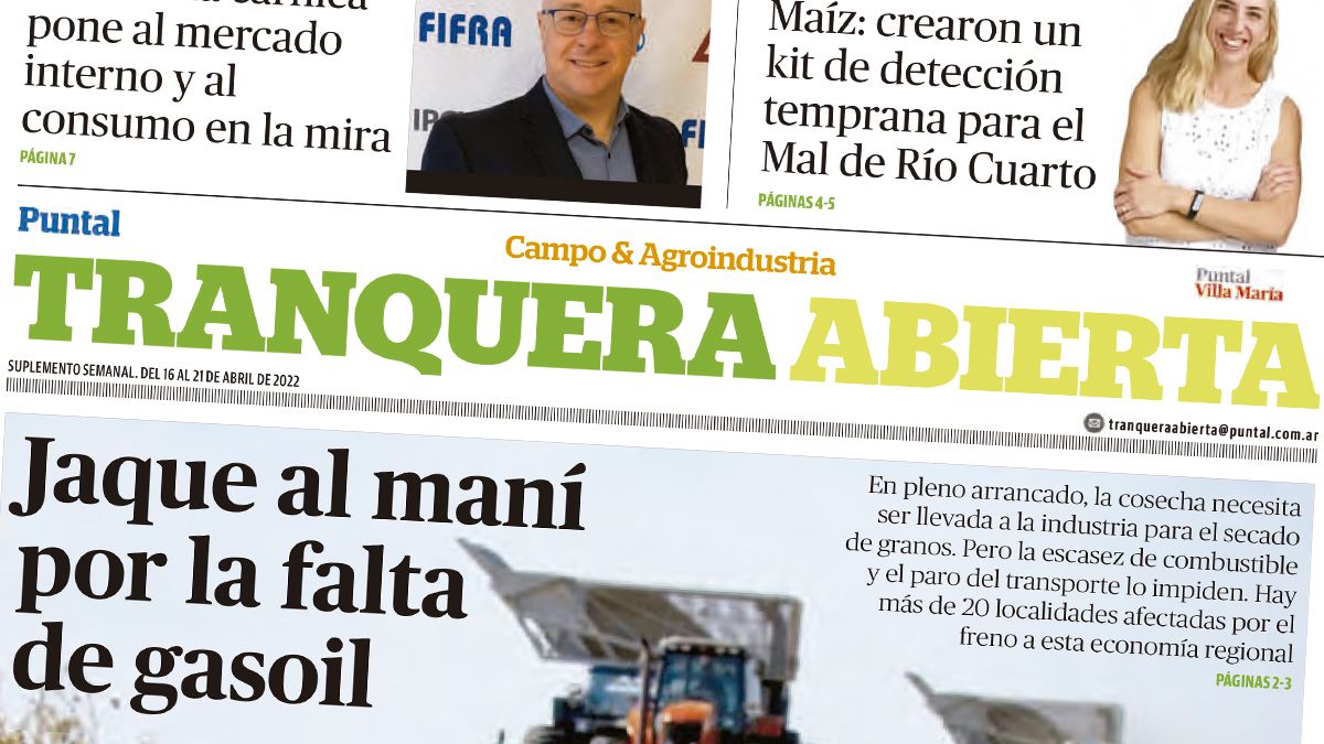 El suplemento Tranquera Abierta de la jornada de hoy presenta como título principal la falta de gas oil en la economía regional del maní, en un momento clave de arrancado y traslado del producto.