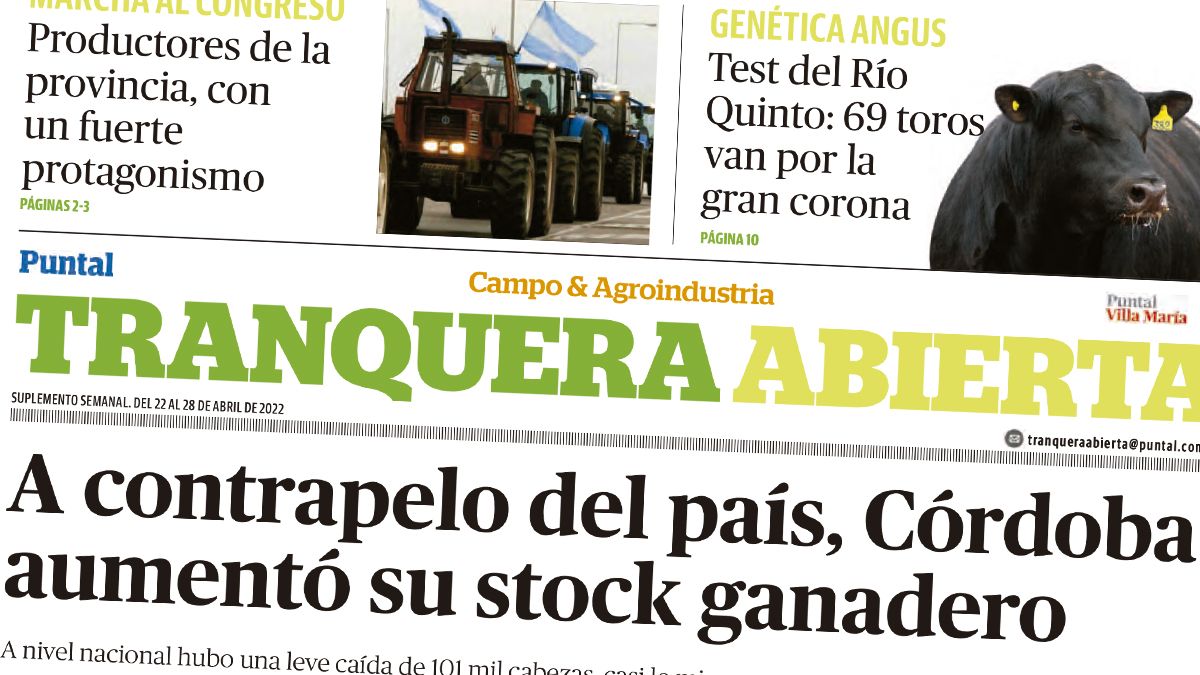 El suplemento Tranquera Abierta presenta hoy como título principal la realidad del stock ganadera de Córdoba que, a contrapelo del país, aumentó su número en el último año. Además la soja esta en su máximo valor histórico.