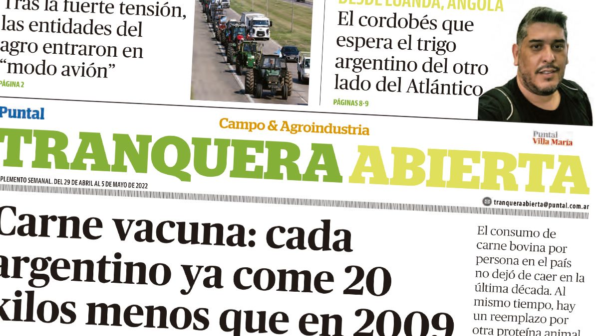 El suplemento Tranquera Abierta de hoy, en diario Puntal, presenta entre sus principales titulos la situación de la carne vacuna y su baja en el consumo; cada argentino ya come 20 kilos menos que en 2009.