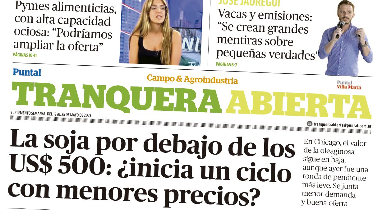 El suplemento Tranquera Abierta presenta entre sus principales títulos la preocupación por el precio de la soja que esta por debajo de los US$ 500, ¿se inicia un ciclo de menores precios?, se pregunta.