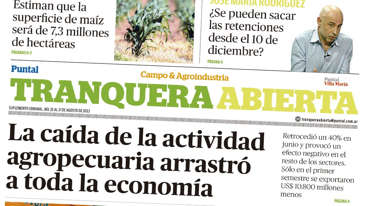 El suplemento Tranquera Abierta presenta entre los temas más relevantes de la semana, la caída de la actividad agropecuaria que arrasó a toda la economía. Retrocedió un 40% en junio y provocó un efecto negativo en el resto de los sectores. Sólo en el primer semestre se exportaron US$ 10.800 millones menos.
