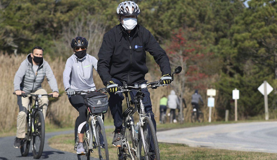 Biden, quien cumplirá 78 años la semana próxima, dio una vuelta en bicicleta en los alrededores de su casa de vacaciones en Rehoboth Beach, Delaware, en tanto que Trump pasó por la concentración partidaria mientras iba desde la Casa Blanca a un club privado a jugar golf.