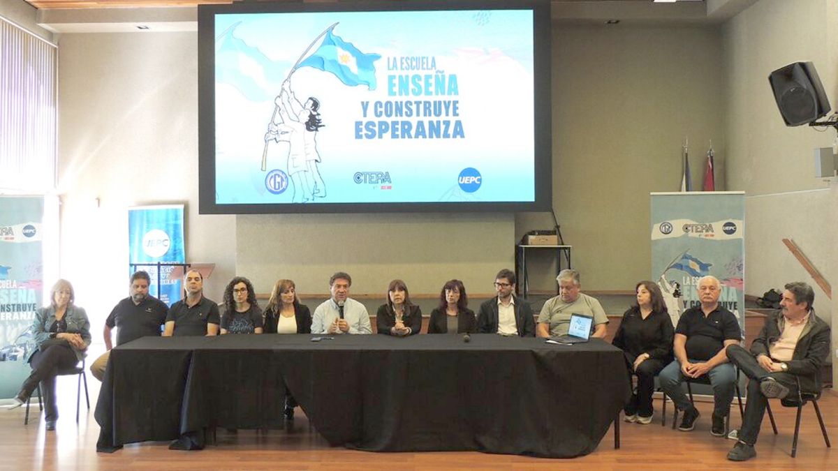 En conferencia de prensa, el secretario general de la Uepc, Roberto Cristalli, anunció “el paro nacional de Ctera del martes 14 de octubre” y dio detalles sobre “la caravana provincial que se realizará el miércoles 8 de octubre”.