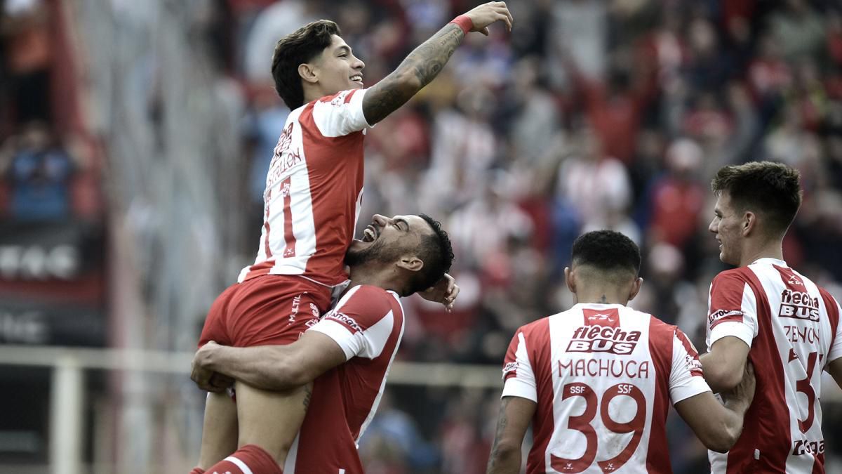 El santafesino nacido en la cantera "rojiblanca" convirtió su primer gol en Primera División en su cuarto partido desde el inicio y después de haber participado del tanto de Mauro Luna Diale para el triunfo de visitante contra Huracán (1-0) en la fecha pasada.