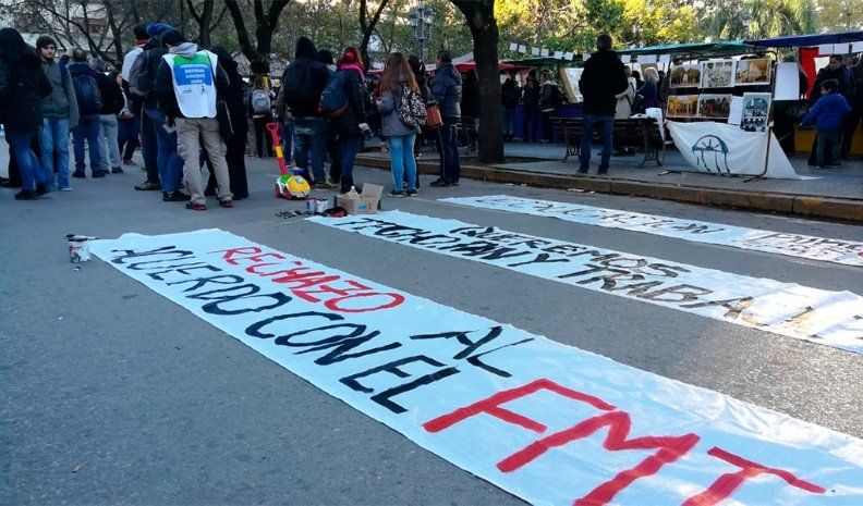 Docentes, no docentes y estudiantes universitarios encabezaron ayer una protesta en plaza Roca junto a docentes de otros niveles educativos, en contra de la reducción presupuestaria, del techo salarial y del acuerdo con el Fondo Monetario Internacional (FMI).