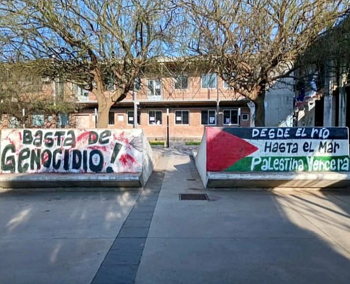 Según informaron fuentes extraoficiales, momentos de tensión se vivieron esta tarde a pocos metros de la FURC, cuando estudiantes que serían militantes del espacio Dinámica Estudiantil, pintaban una bandera Argentina sobre una bandera de Palestina.