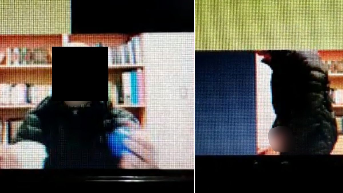 Las imágenes muestran al profesor levantarse de su silla y orinar en un recipiente, dejando ver sus genitales ante la cámara de la computadora.