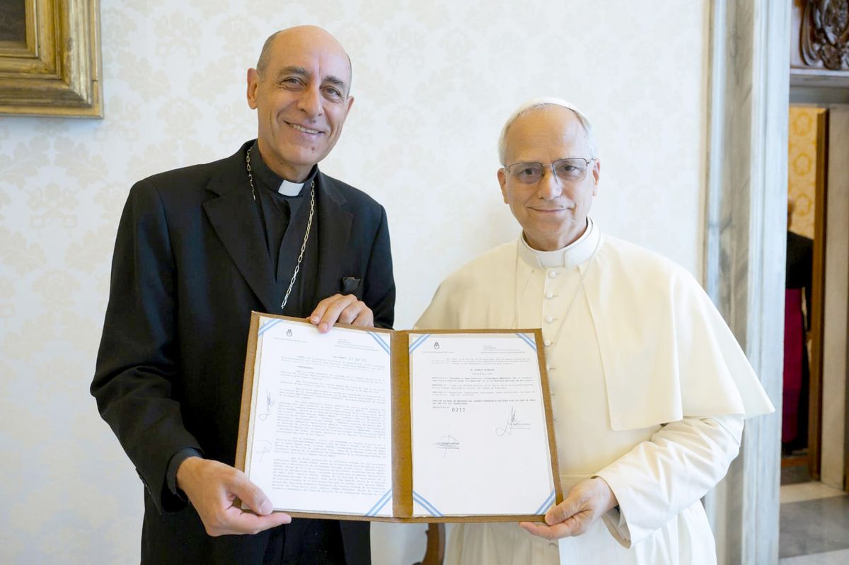 El prefecto del Dicasterio para la Doctrina de la Fe, Víctor Manuel “Tucho” Fernández, le entregó al papa León XIV el título Doctor Honoris Causa que la Universidad Nacional de Río Cuarto le otorgó al papa Francisco.