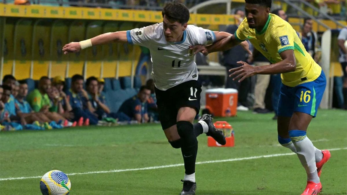 Ya en la segunda etapa, a los 10 minutos, Maximiliano Araújo inició gran jugada por la izquierda que terminó con el pase a Federico Valverde, y el mediocampista del Real Madrid encaró al centro del área y definió de un derechazo para poner el 1 a 0, esquinado contra el palo, para el conjunto uruguayo en suelo brasileño.