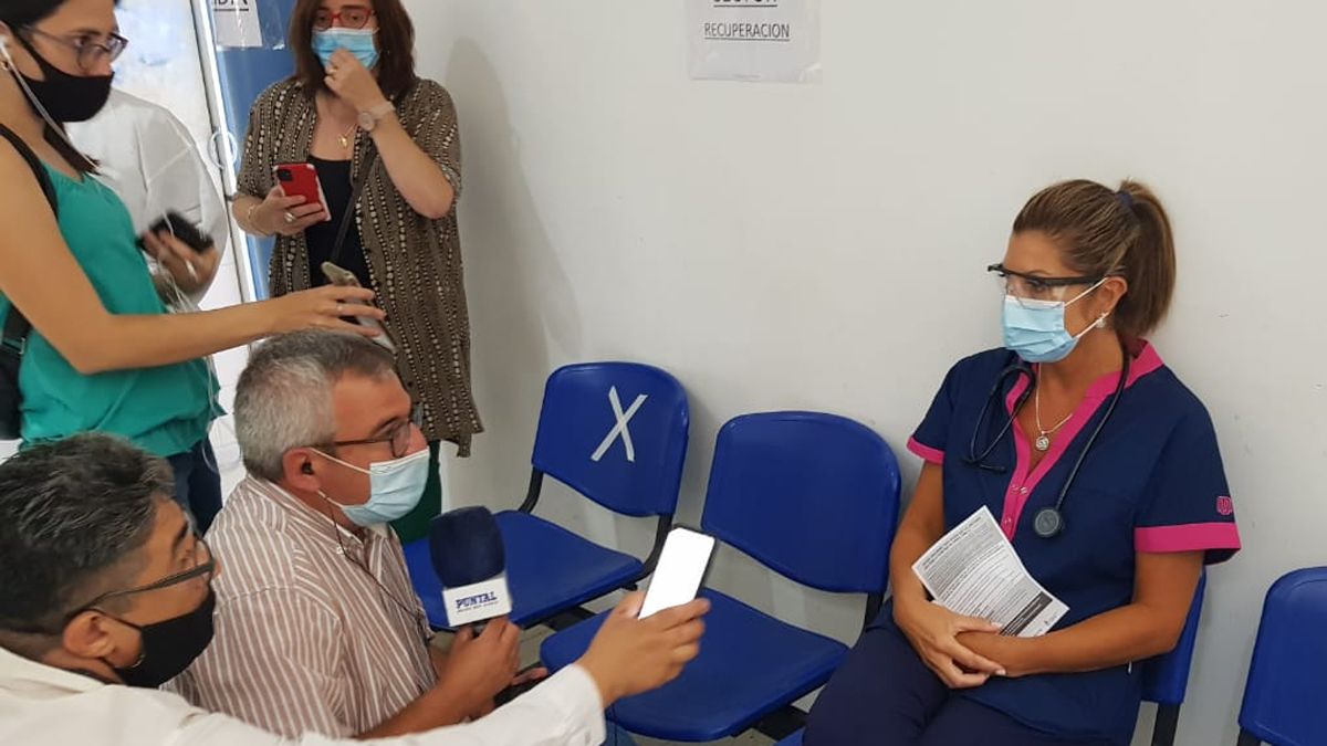 “Esto es un hecho histórico. A nosotros, el personal de salud, el Covid-19 nos puso de rodillas y hoy nos ponemos de pie”, dijo visiblemente emocionada la mujer a Puntal AM!, quien luego por recomendación de sus pares, los profesionales médicos del Hospital, decidió interrumpir la entrevista por la misma emoción que la invade en este momento.