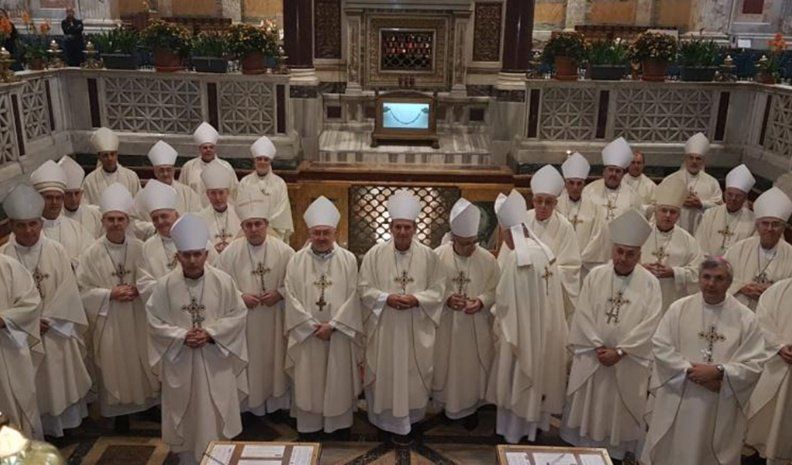El primero de tres grupos de obispos argentinos inició formalmente hoy una visita "ad limina" al Vaticano, con una peregrinación a la tumba de San Pablo y una celebración eucarística en una basílica romana.