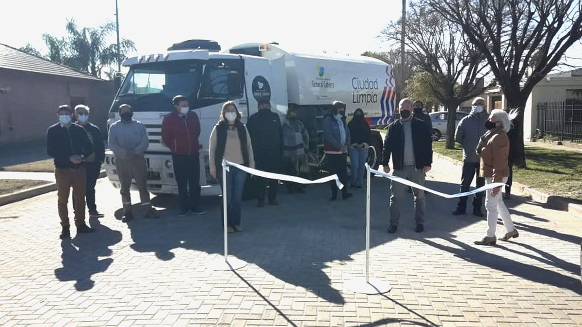 Las autoridades municipales de General Cabrera presentaron una nueva barredora y dejaron inaugurada la cuadra con adoquines número 41, junto a los vecinos. El simbólico corte de cinta se realizó en la esquina de Mitre y Uruguay.