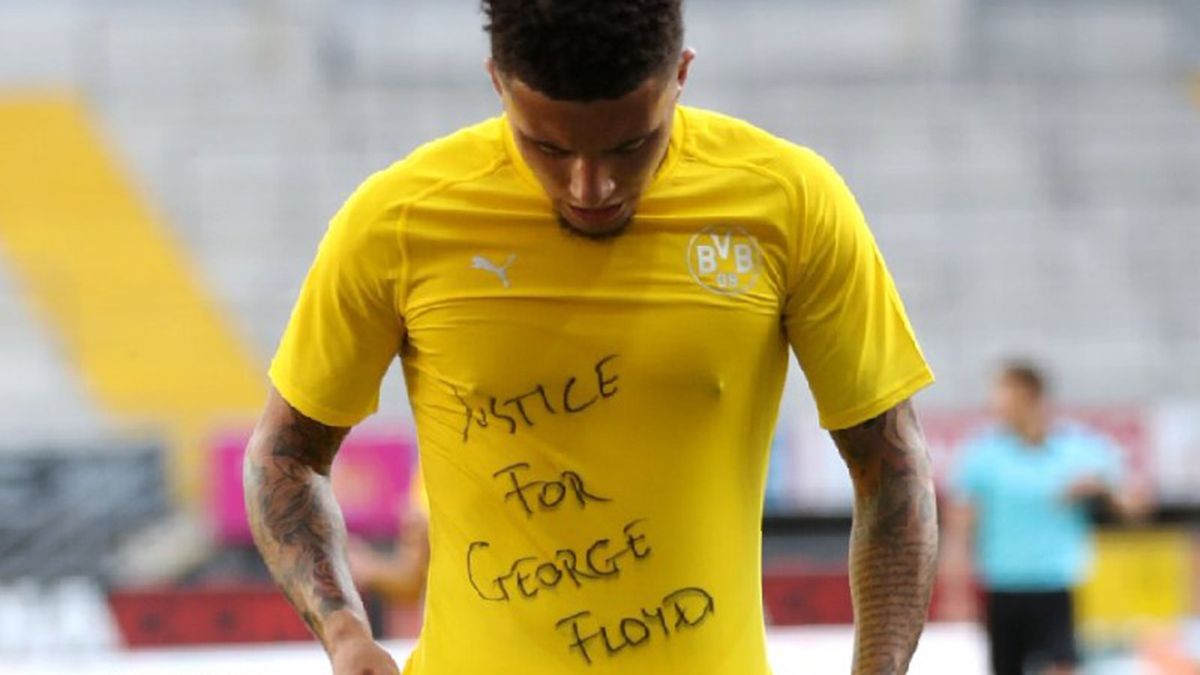 Los cuatro jugadores protestaron después de sus goles el fin de semana pasado con diferentes acciones contra la muerte del afroamericano George Floyd como resultado de una brutal operación policial en Minneapolis, Estados Unidos. Sancho mostró una camiseta que decía "Justicia para George Floyd" y Thuram se arrodilló.