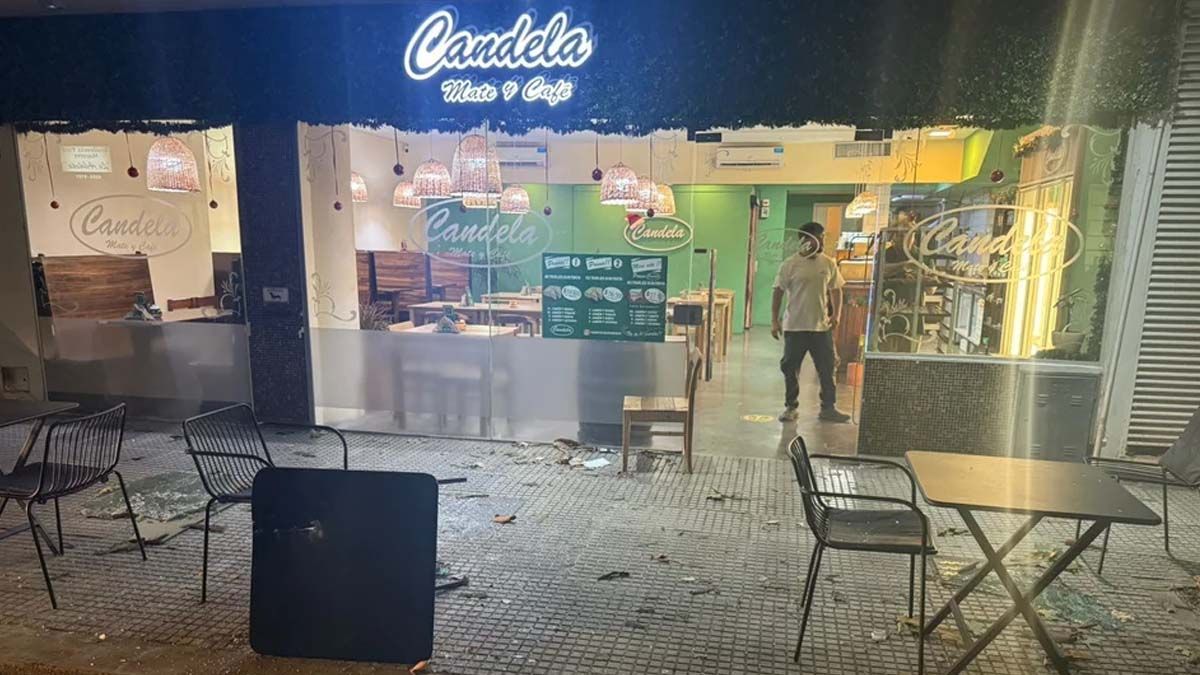Las imágenes muestran que el cliente estaba tomando una bebida cuando de repente se le cayó encima el blindex de 1x1 que pertenecía al balcón del edificio que estaba sobre el local.