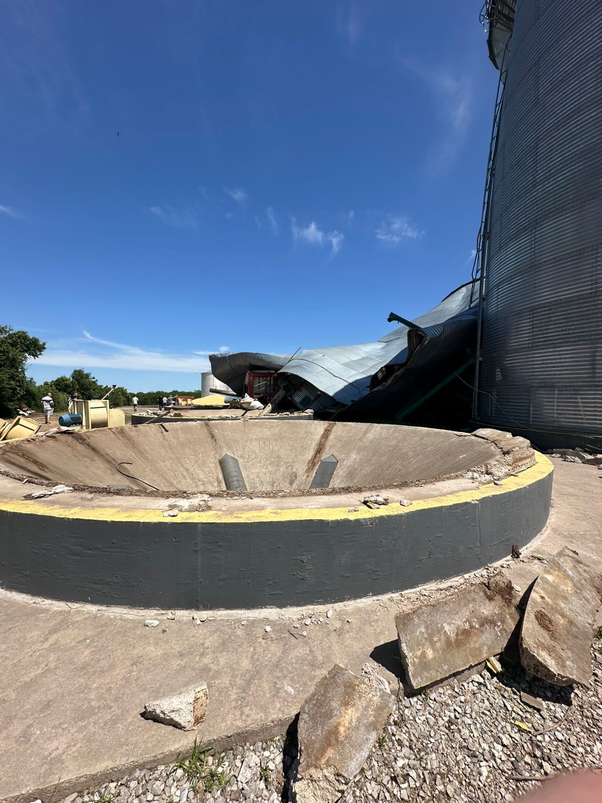 Santiago contó que entre los daños, los sorprendió que los motores que tienen cada uno de los silos, abulonados a un bloque de cemento, fueron arrancados de cuajo. “Ni siquiera cortó los bulones, arrancó todo completo”, detalló.