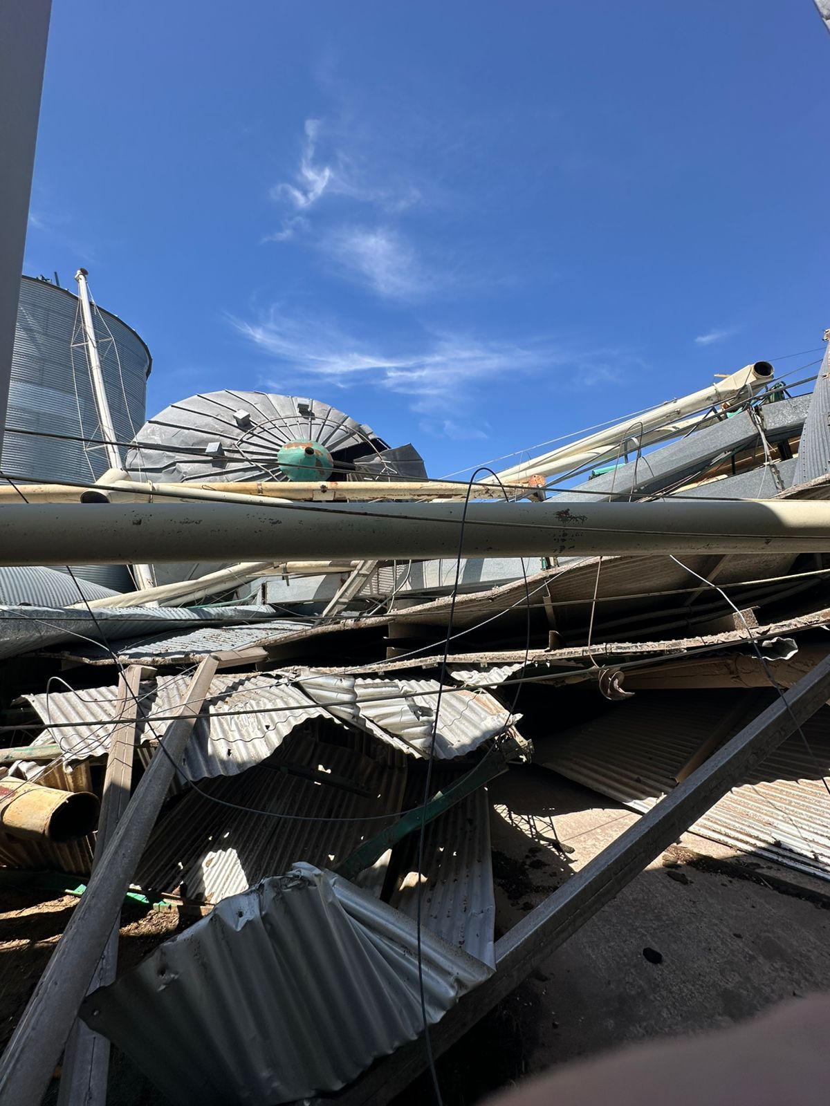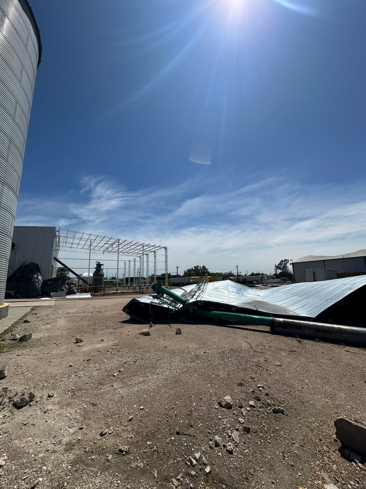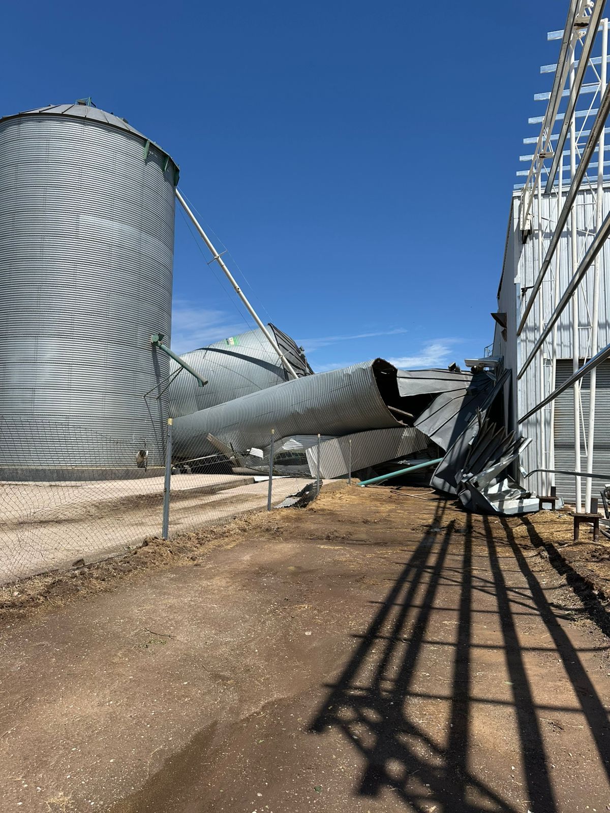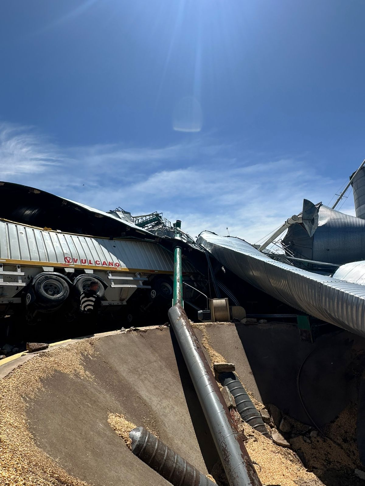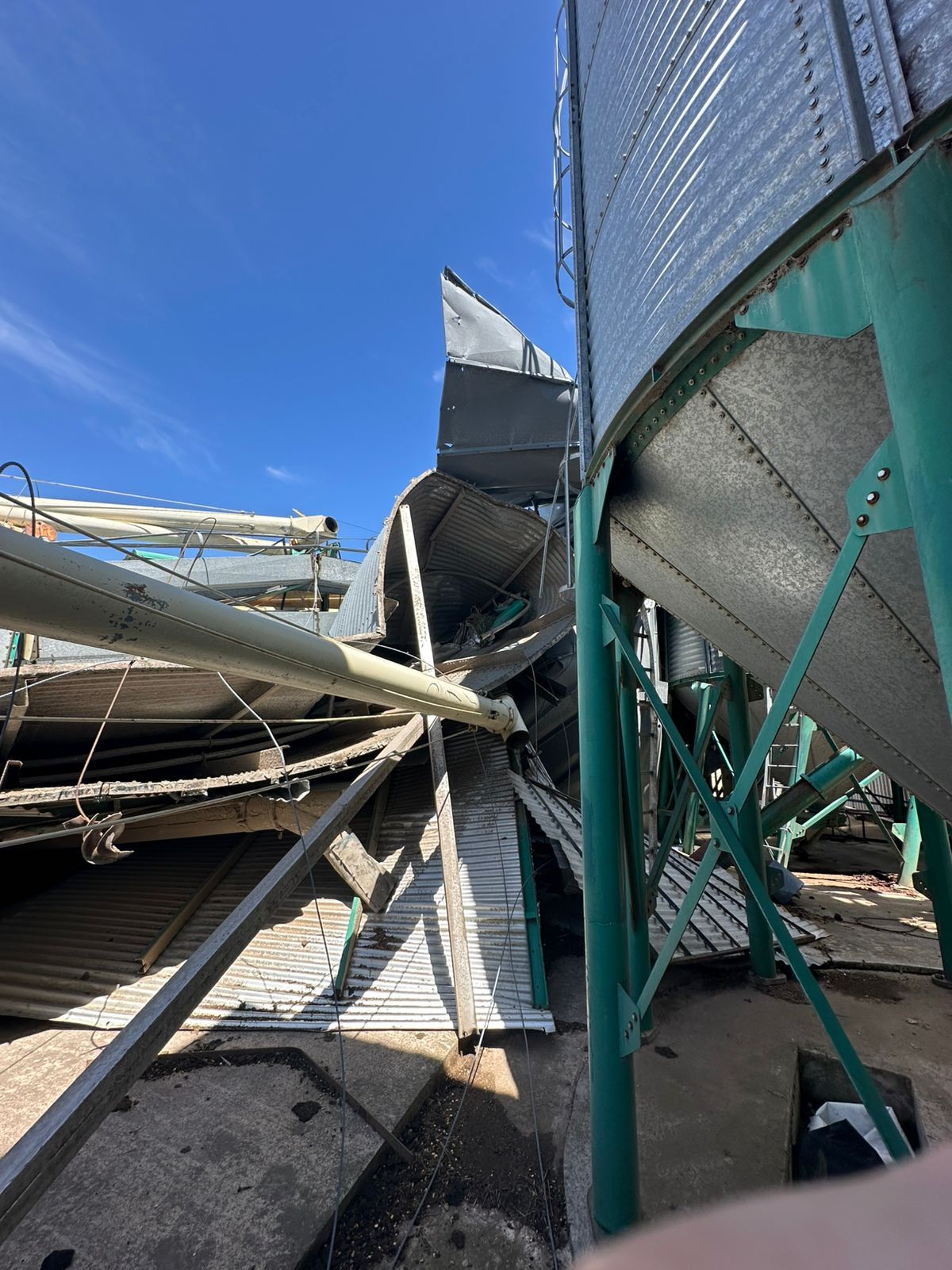 Estiman que el pico de las ráfagas ocurrió entre las 21 y las 22 horas del sábado y las estructuras no lograron resistirlas. Según detalló Santiago, había tres norias, 8 silos, dos camiones guardados, un galpón de descarga y una habitación de comandos con paneles recientemente comprados que se perdieron por completo.