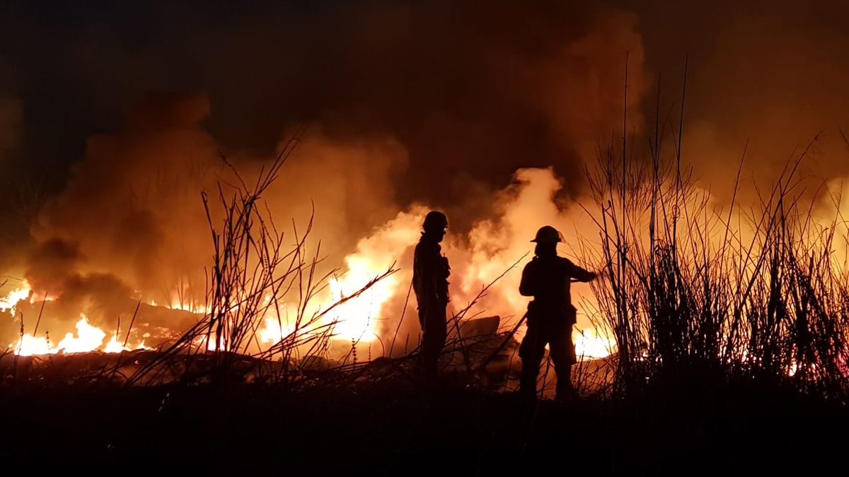 Por el incendio declarado esta mañana hubo momentos de dramatismo en el transcurso de la tarde y los vecinos tuvieron que trabajar codo a codo con los brigadistas para salvar los bienes.