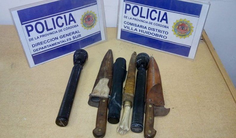 Asimismo, se encontraron tres armas blancas y linternas, que fueron secuestradas por los agentes.