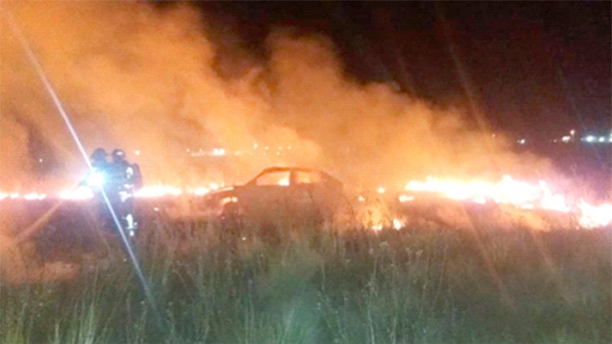 En el hecho intervinieron dos dotaciones de bomberos, que por un lado asistieron al automovilista y por el otro extinguieron las llamas que llegaron a pastizales de la zona.
