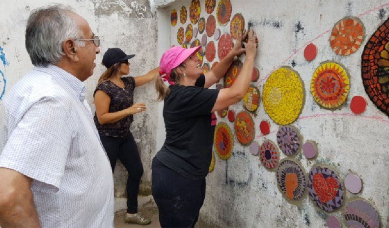 Además, eligieron como motivo los círculos para generar una obra con movimiento. Participaron las asistentes al taller de mosaiquismo realizado en la sede de la Defensoría, a la vez que alumnas de Cignetti y otras oriundas de Adelia María le hicieron llegar sus diseños listos para colocar en la pared. Quedó pendiente la colocación de una cruz también realizada con la técnica de mosaiquismo.