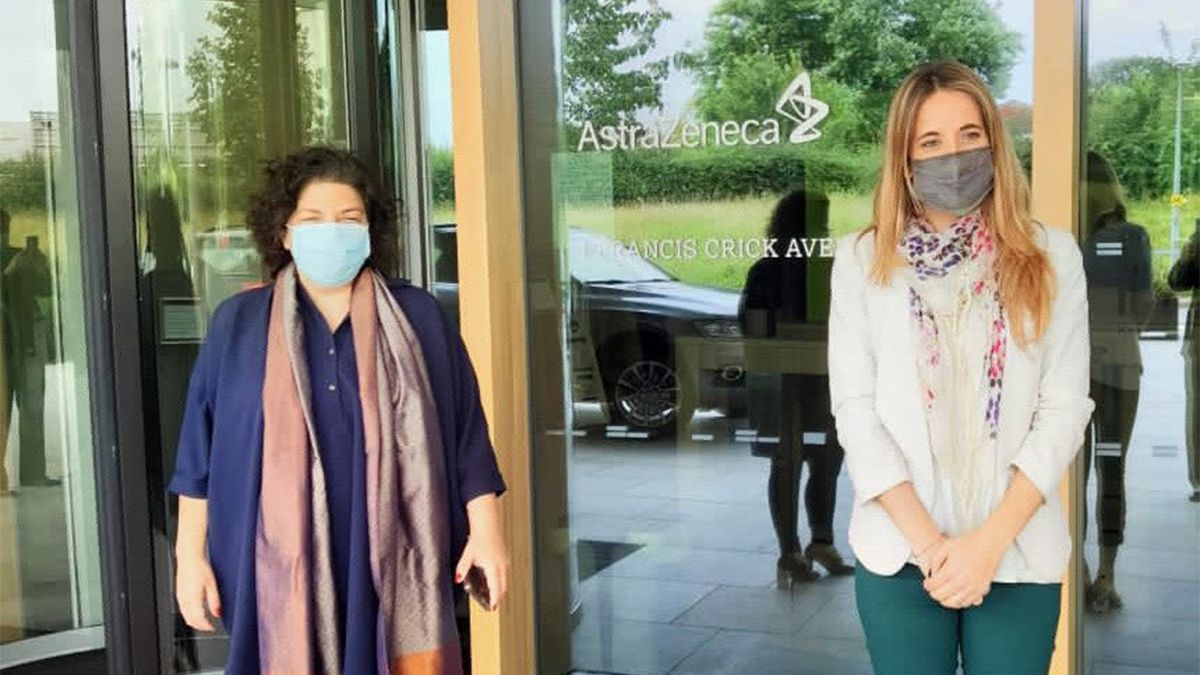 Ayer Nicolini y Vizzotti, visitaron el centro de investigación y desarrollo del laboratorio AztraZeneca en Cambridge, Gran Bretaña, como parte de la visita que realizan a ese país para intercambiar experiencias en la lucha contra el coronavirus.