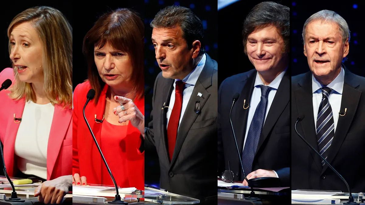 Son las boletas que representan a los cinco candidatos a presidente: Sergio Massa (Unión por la Patria), Patricia Bullrich (Juntos por el Cambio), Javier Milei (La Libertad Avanza), Juan Schiaretti (Hacemos por Nuestro País) y Myriam Bregman (Frente de Izquierda y de Trabajadores Unidad).
