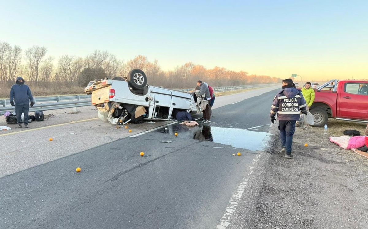 Una camioneta volcó en la Autovía Gobernador Juan Bautista Bustos, a la altura del kilómetro 675, cerca de la localidad de Elena.