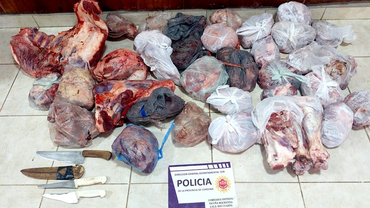 En tanto, en un domicilio en el que reside un hombre de 43 años, se incautaron 70 kilos de carne fraccionada, herramientas para el desposte y cuchillos.